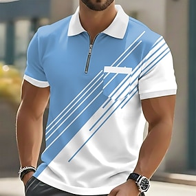 Per uomo A righe Polo con zip Maglia da golf Manica Corta Magliette polo Camicie con Colletto Business Casual Abbigliamento da lavoro Abbigliamento Formale Abbigliamento da festa Stampa 3D Polo con
