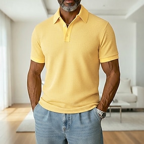 Per uomo Magliette Polo a Nido d'Ape Testurizzato Casuale Ferie Bavero Colletto Polo a Coste Manica Corta Moda Essenziale Semplice Bottoni Morbido Estate Primavera Vestibilità regolare Bianco Giallo