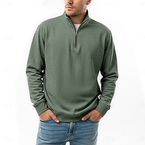 Per uomo POLO Polo con zip a un quarto Ufficio Da tutti i giorni Bavero Manica lunga Di tendenza Comodo Liscio Tasche Zip Up Estate Primavera Standard Giallo Blu marino Grigio scuro Verde militare