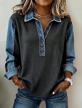 Per donna Tunica Vintage Elegante Manica Lunga Top Regolari Nero Grigio scuro Estate Primavera