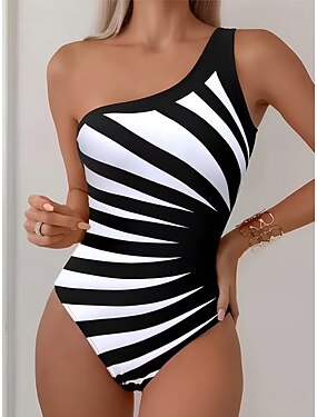 Costume da bagno intero da donna snellente Monokini taglio alto controllo della pancia vita alta slim schiena scoperta estate in spiaggia grafica geometrica asimmetrica senza maniche