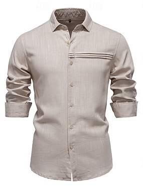 Per uomo Camicia Camicia di lino Camicia popover Camicia casual Camicia con Bottoni Camicia di cotone Patchwork Vacanza Camicia hawaiana Nero Bianco Cachi Verde militare Manica Lunga Colletto alla