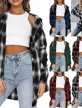 Per donna Giacca Camicia Giacca Casual Confortevole Traspirante Tasca Bottoni Stampato Casual Plaid Vacanza Streetwear Casuale Abbigliamento quotidiano Monopetto Regolare Collo ripiegato Vestibilit