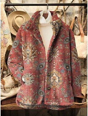 Per donna Giacca Casual Traspirante Confortevole Stampato Vintage Casual Floreale Vacanza Streetwear Casuale Abbigliamento quotidiano Aperto davanti Regolare Senza colletto Vestibilità regolare