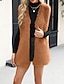 Per donna Gilet Confortevole Tasca Nappa Casual Tinta unica Vacanza Streetwear Casuale Abbigliamento quotidiano Lungo Senza colletto Vestibilità regolare Senza Maniche Capispalla Nero Cammello