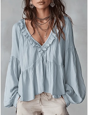 Per donna Camicia Tinta unica Semplice Elegante Bohemien Attivo Manica Lunga Scollo a V Top Regolari Quotidiano Abbigliamento casual alla moda Feste Bianco Verde chiaro Vino Cachi Azzurro Estate