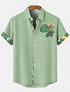 Per uomo Camicia di lino Camicia Estiva Abbigliamento da spiaggia Camicia con Bottoni Piante Spiaggia Vacanza Blu Rosa Verde Cachi Manica Corta Collo ripiegato Estate Primavera Abbigliamento