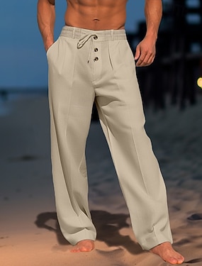Per uomo Pantaloni di Lino Pantaloni Pantaloni Estivi Coulisse Elastico in vita Gamba Dritta Semplice Comodità Traspirante Lunghezza intera All'aperto Casuale Quotidiano Vacanza Moda Bianco Marrone