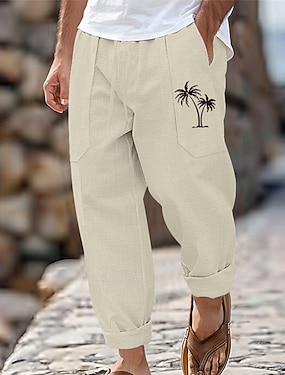 Per uomo Pantaloni di lino Pantaloni Pantaloni estivi A cordoncino Vita elastica Gamba dritta Albero di cocco Comfort Traspirante Lunghezza intera Esterno Informale Giornaliero Di tendenza Retr
