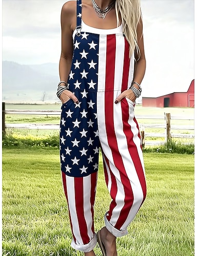 giornata dell'indipendenza americana tuta da donna attiva grafica senza maniche senza maniche dritta scollo quadrato patchwork tasca quotidiano spiaggia vestibilità ampia blu rosso estate