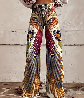Per donna Gamba larga Chinos Vacanza Hawaiano Lunghezza intera Vita Alta Paisley Fascia Elastica Stampa Comodo Morbido Confortevole Micro-elastico All'aperto Streetwear Rosso Verde Estate Primavera
