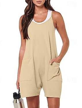 Per donna Normale Tuta Attivo Tinta unica Senza Maniche Collo a U Tasca Quotidiano Vacanza Vestibilità comoda Nero Blu marino Cachi Estate