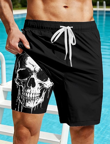 Per uomo Teschio Pantaloncini foderati Pantaloncini da bagno 2 in 1 Costumi da bagno Pantaloncini da bagno Misura del girovita medio Stile gotico oscuro Vacanza al Mare Tasche Laterali Con Fodera a