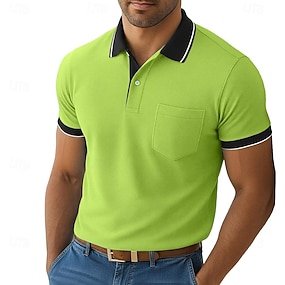 Per uomo Polo Sportivi Maglia da golf Casuale Colletto Polo a Coste Manica Corta Moda Essenziale Tinta unica Patchwork Estate Vestibilità regolare Nero Bianco Rosso Blu Verde Polo Sportivi