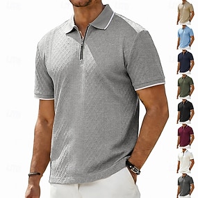 Per uomo Testurizzato Maglia da golf Casuale Lavoro Bavero Zip a un quarto Manica Corta Essenziale Moderno Blocco di colori Cerniera Tasca Estate Primavera Primavera & Estate Vestibilità regolare