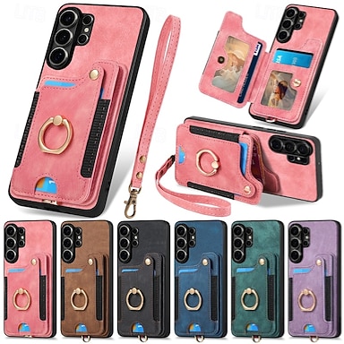 telefono Custodia Per Samsung Galaxy S26 Ultra Plus S25 S25 Edge S24 S23 Ultra Plus S24 FE S22 Plus Ultra Custodia Portafoglio con Supporto Cerniera Protezione Completa Retrò TPU Pelle PU
