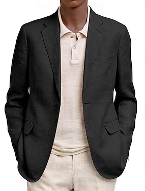 Per uomo Blazer di Lino Giacca Sportiva Colletto ad incastro Moda Casual Tinta unita Blazer in lino Nero Vestibilità standard Monopetto Un Bottone