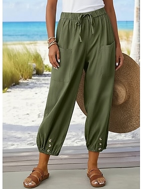 pantaloni capri da donna 100% cotone pantaloni estivi casual comodi tinta unita tasca elastico vita pantaloni vacanza casa tutti i giorni nero bianco verde militare blu navy blu estate primavera autunno
