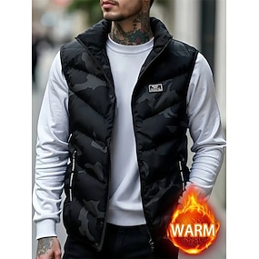 Per uomo Gilet imbottito Gilet Vacanza Quotidiano Data Moda Casual Autunno & Inverno Tasca Poliestere Caldo Confortevole Mimetico Cerniera Collo alla coreana Vestibilità regolare Nero Verde militare