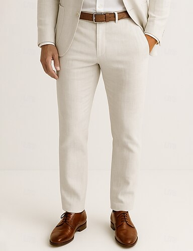 Uomo Completi in Lino Matrimonio in Spiaggia Casuale Beige Primavera, Autunno, Inverno, Estate Tuta Quotidiano Leggero Tinta unita Vestibilità standard 2 pezzi Monopetto a un bottone