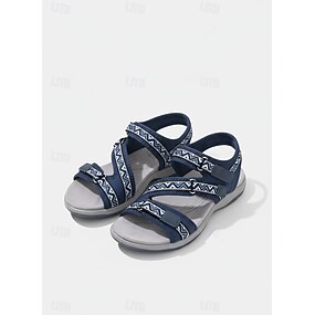 sandali sportivi blu da donna con cinturini regolabili e motivo geometrico – comode scarpe da passeggio per escursioni, viaggi e abbigliamento casual