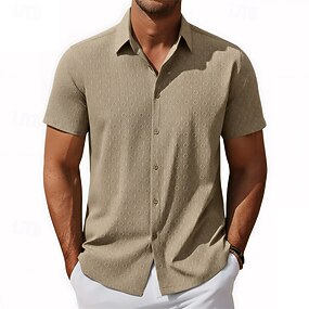 Per uomo Camicia Tessuto Camicia casual Camicia con Bottoni Nero Bianco Kaki Manica Corta Semplice Collo ripiegato Casuale Quotidiano Traforato Abbigliamento Elegante Moda Casual