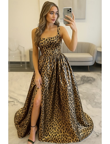 Linea ad A Abito da Sera Elegante Abito formale Formale Lunghezza al pavimento Senza Maniche Collo quadrato Raso con Stampa floreale Tasca 2025