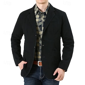 Per uomo Blazer Affari Cocktail party Ricevimento di matrimonio Moda Casual Primavera & Autunno 100% Cotone Tinta unica Tasca Bottoni Confortevole Monopetto Giacca Nero Verde Kaki