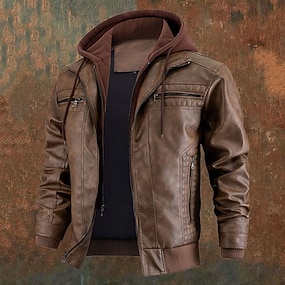 Per uomo Giacca in Ecopelle Giacca da Biker Giacca da Moto Vacanza Quotidiano Antivento Caldo Tasca Autunno Inverno Semplice Moda Classico Con Cappuccio Regolare Nero Marrone Giacca
