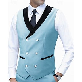 Per uomo Gilet Formale Vacanza Quotidiano Ricevimento di matrimonio Moda Classico Primavera Autunno Tasca Bottoni Poliestere Confortevole Semplice Spina di Pesce Doppiopetto Scollo a V Vestibilit
