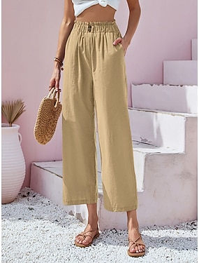 Per donna Cotone Finto cotone e lino Gamba larga Chinos Vacanza Streetwear Essenziale Lunghezza alla caviglia Vita media Semplice Tasca Elastico in vita Comodo Confortevole Traspirante Micro-elastico