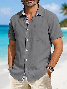 Per uomo Camicia Camicia di lino Camicia Estiva Abbigliamento da spiaggia Camicia cargo Tinta unica Casuale Vacanza Nero Bianco Blu marino Azzurro cielo Manica Corta Bavero Estate Primavera