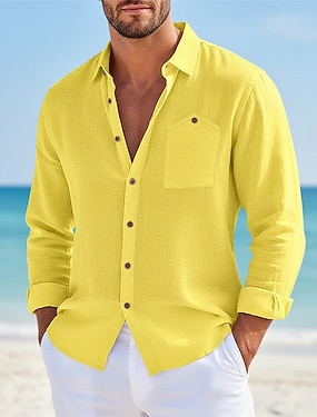 Per uomo Camicia Camicia di lino Camicia Estiva Abbigliamento da spiaggia Camicia con Bottoni Semplice Casuale Vacanza Nero Bianco Giallo Blu marino Manica Lunga Collo ripiegato Estate Primavera