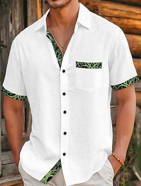 Per uomo Camicia camicia di lino Camicia estiva Camicia hawaiana Color Block Da mare Curise Nero Bianco Rosa Blu marino scuro Manica corta Con colletto Primavera estate Abbigliamento Collage