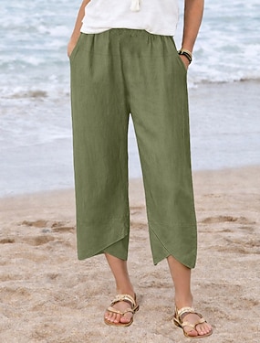 Per donna Finto cotone e lino Chinos Pantaloni Estivi Vacanza Streetwear Casual Lunghezza alla caviglia Vita media Semplice Tasca Elastico in vita Comodo Comodità Inelastico Quotidiano All'aperto