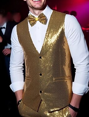 gilet da uomo con scollo a V, tinta unita, nero, argento e oro, vestibilità su misura