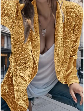 Per donna Blusa Top Eleganti Top con paillettes Arricciato Paillettes Bottoni Semplice Elegante Vintage Signore Manica Lunga Colletto a Camicia Top Regolari Quotidiano Lavoro Ferie Nero Champagne