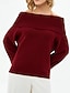 Per donna Felpa Maglione Moda Streetwear Casual Tinta unica A Coste Senza Spalle Lavorato a maglia Manica Lunga Top Regolari Maglia All'aperto Quotidiano Weekend Rosso bordeaux Autunno Inverno