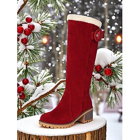 stivali da donna in pelle scamosciata rossa con fibbia, tacco a blocco spesso, eleganti e comodi, perfetti per l'inverno, il Natale e le occasioni informali
