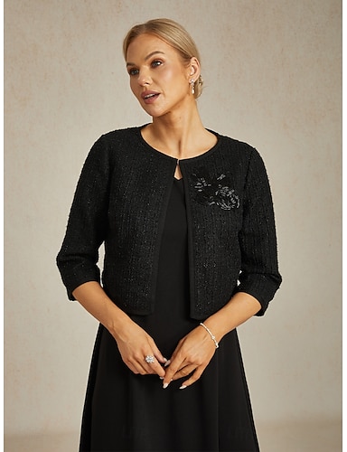 Per donna Giacca Trench Caldo Con perline Elegante Formale Feste Ospite di nozze Lavoro Corto Girocollo Vestibilità regolare Manica Lunga Capispalla Nero Primavera Autunno