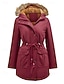 Per donna Parka Caldo Confortevole Cerniera Tasca Con cintura Collo in Pelliccia Casual Tinta unica Vacanza Streetwear Casuale Abbigliamento quotidiano Lungo Con Cappuccio Vestibilità regolare Manica