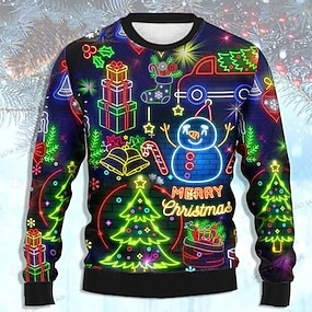 Maglione di Natale brutto Per uomo Stampa 3D Personaggio dei cartoni animati Maglione Maglieria Girocollo Casual Vacanza Quotidiano Festival Tenere al caldo Manica Lunga Primavera Autunno Inverno