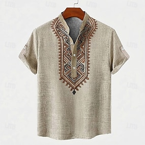 Per uomo Motivo Geometrico Tribale Etnico Camicia Camicia button-down Manica Corta Vintage Retrò Ferie Casual Quotidiano Estate Primavera Colletto Mao Colletto Henley Stampa 3D Camicia tipo lino