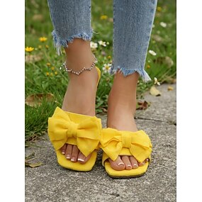 Sandali da donna gialli con fiocco – ciabatte basse e leggere, stile estivo casual e grazioso per donna, perfette per la spiaggia, le vacanze, la casa e lo shopping.