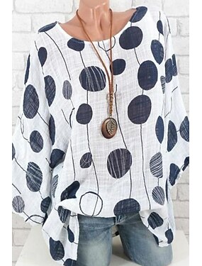 Per donna Camicia Blusa Camicie di cotone e lino A Pois Casual Manica Corta Girocollo Top Regolari Quotidiano Stampato Bianco Blu Estate