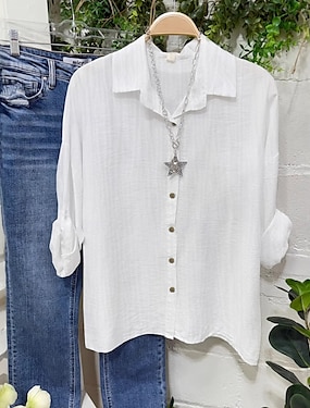Camicia da donna in 100% cotone, tinta unita, elegante, casual, a maniche lunghe, colletto classico, per tutti i giorni, per le feste, con bottoni, bianca, gialla, rosa, blu, estate e primavera.