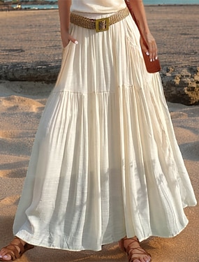 Per donna Elegante Bohemien Vintage Casual Maxi Vita Alta Gonne Inelastico Balli di fine anno Vacanza Rosso ruggine Blu denim Blu Niagara Primula gialla Estate Cotone Lino