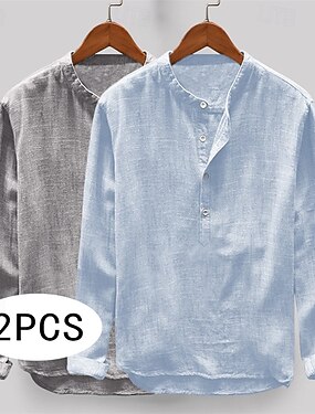 Per uomo Camicia di lino Camicia Estiva Abbigliamento da spiaggia Camicia con colletto alla coreana Tinta unica Vacanza Casuale Grigio chiaro + blu Grigio scuro + grigio chiaro Blu+Cachi Cachi