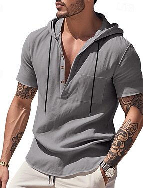 Per uomo Camicia Camicia di lino Camicia Estiva Abbigliamento da spiaggia Camicia con cappuccio Tinta unica Vacanza Streetwear Nero Bianco Azzurro cielo Verde Manica Corta Con Cappuccio Estate