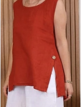 Per donna Maglietta Camicia in finto lino Bottoni Semplice Moda Elegante Classico Senza Maniche Manica Corta Girocollo Top Regolari Quotidiano Uscire Weekend Blu Bianco Rosso Viola Marrone Estate